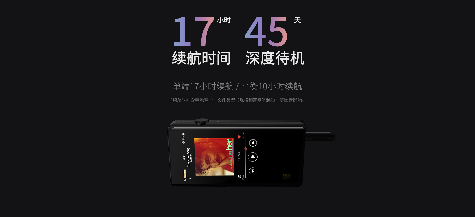 續(xù)航時間:16-17小時(單端輸出) 9-10小時(平衡輸出)